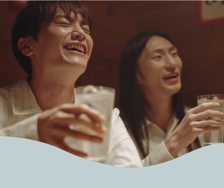 生きる糧として、ライブ鑑賞やスポーツ観戦などを謳歌する日常シーンを背景に、その熱量にブーストをかけ、仲間と喜びを分かち合い、人生をより豊かにしてくれる商品として「白岳しろ」が登場します。